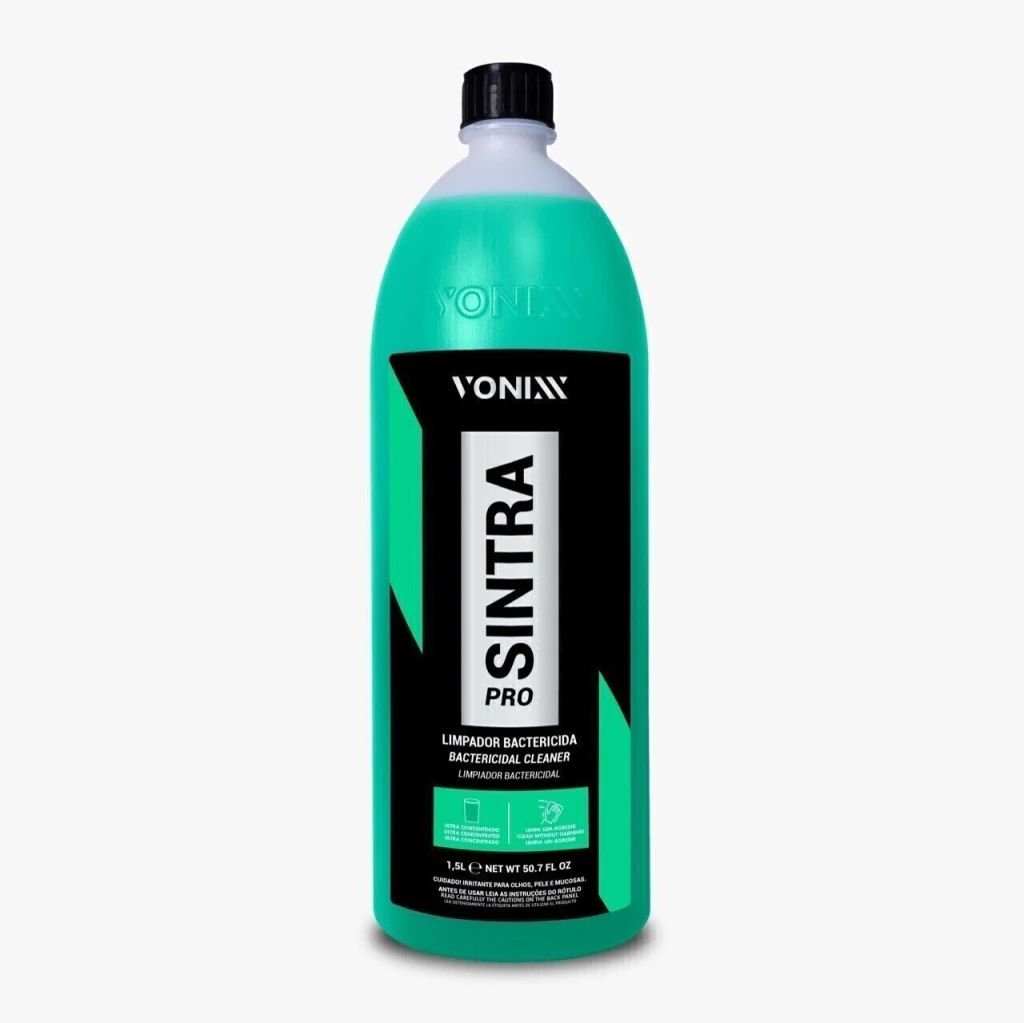 SINTRA PRO – LIMPEZA INTERNA é um multilimpador flotador bactericida de pH balanceado e ultra concentrado, indicado para limpeza de painéis, laterais e cantos de portas, bancadas de couro, carpetes e estofados. Promove alto poder de remoção de manchas de gordura e sujeiras diversas, além de eliminar microrganismos causadores de doenças no interior do veículo. A baixa espumação o torna ideal para ser usado em extratoras, eliminando as sujidades do interior do veículo e deixando-o limpo novamente. SINTRA PRO diminui maus odores no interior do veículo, tornando-o mais saudável e livre de impurezas.
